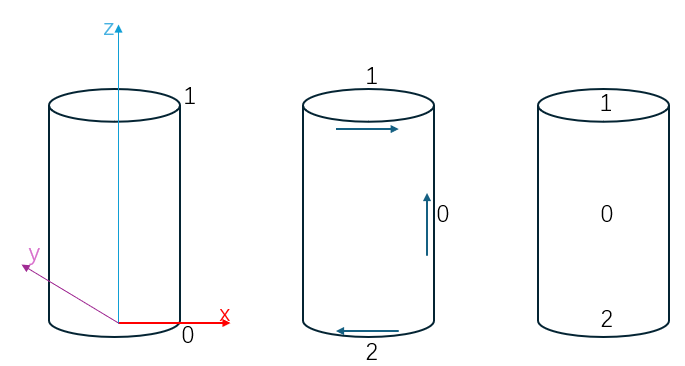 In the above example, two pcurves for the seam edge of a cylinder were obtained. The orientation of these two pcurves is always consistent and matches the orientation of the curve3d. The edge's orientation is not considered.