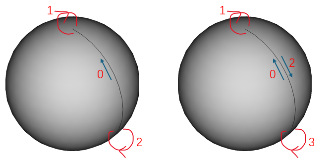 A Seam Edge has one curve3d and two pcurves, both on one Face. The difference between the two pcurves lies in the Orientation of the Edge: one pcurve corresponds to the forward direction of the Edge, and the other corresponds to the reverse direction.
