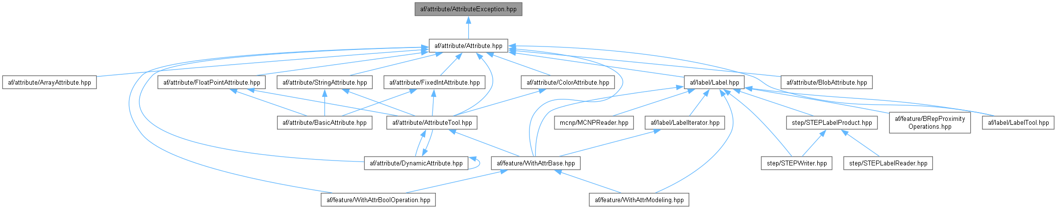 + Include dependency graph for AttributeException.hpp: